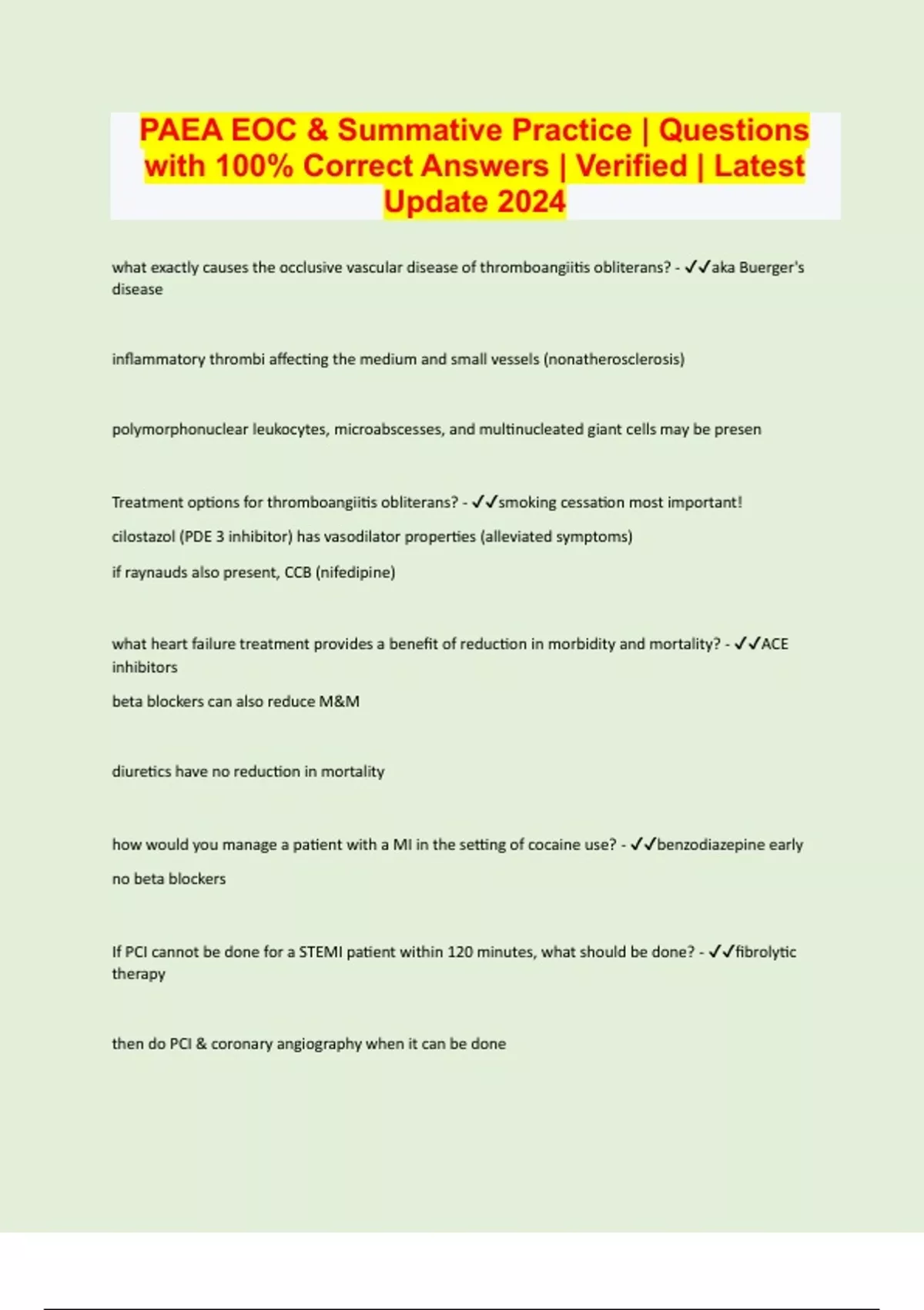 PAEA EOC & Summative Practice | Questions with 100% Correct Answers | Verified | Latest Update 2024