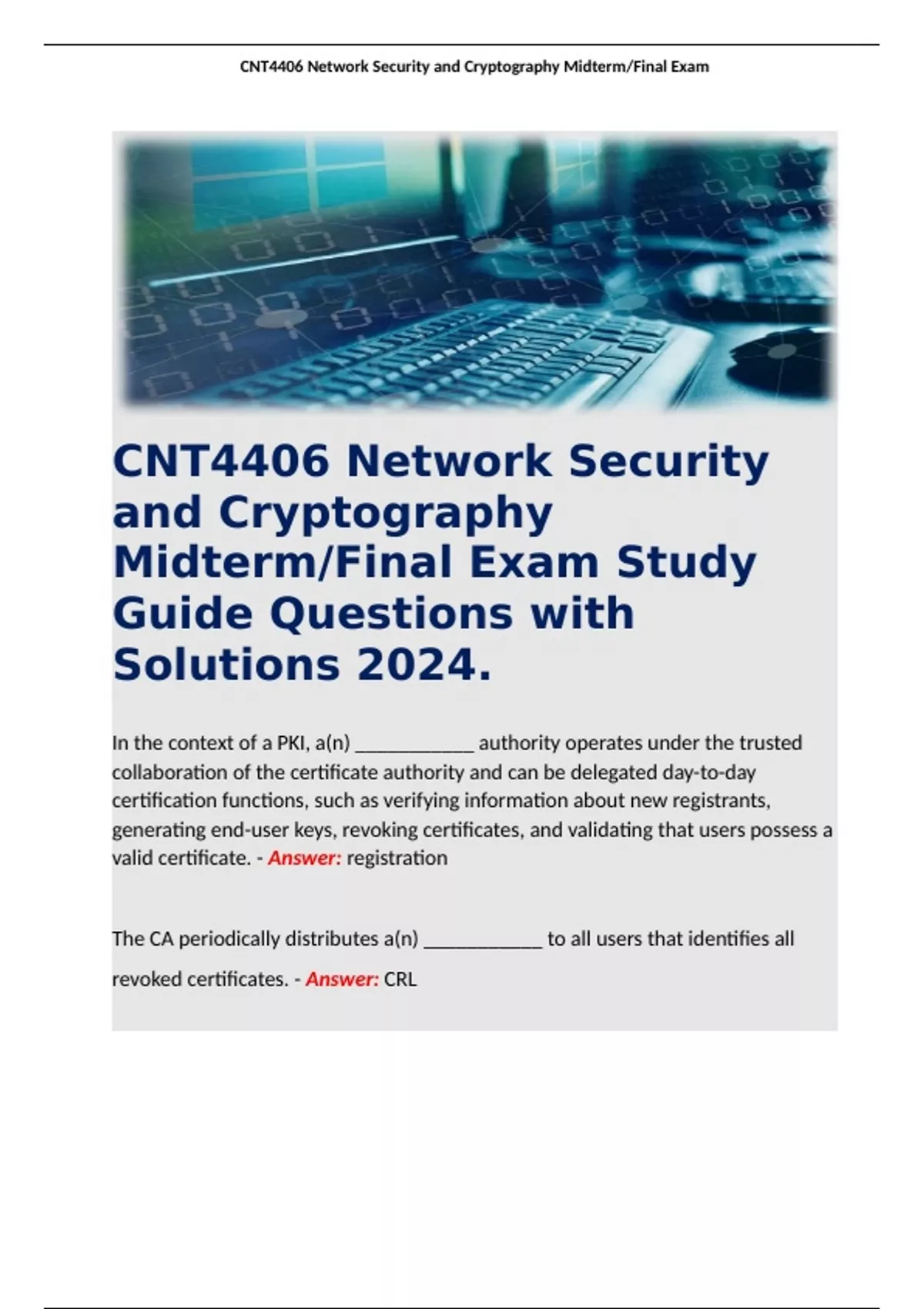 , CNT4406 Network Security and Cryptography Midterm/Final Exam