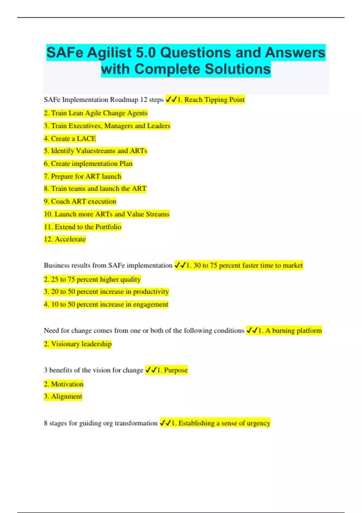 SAFe Agilist 5.0 Questions and Answers with Complete Solutions
