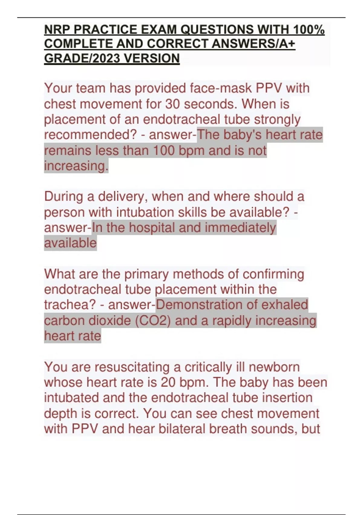 NRP PRACTICE EXAM QUESTIONS WITH 100% COMPLETE AND CORRECT ANSWERS/A+ GRADE/2023 VERSION