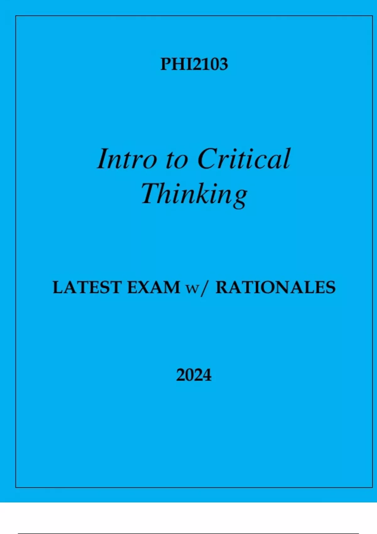 PHI2103 INTRO TO CRITICAL THINKING LATEST EXAM WITH RATIONALES 2024.PHI2103 INTRO TO CRITICAL THINKING LATEST EXAM WITH RATIONALES 2024.