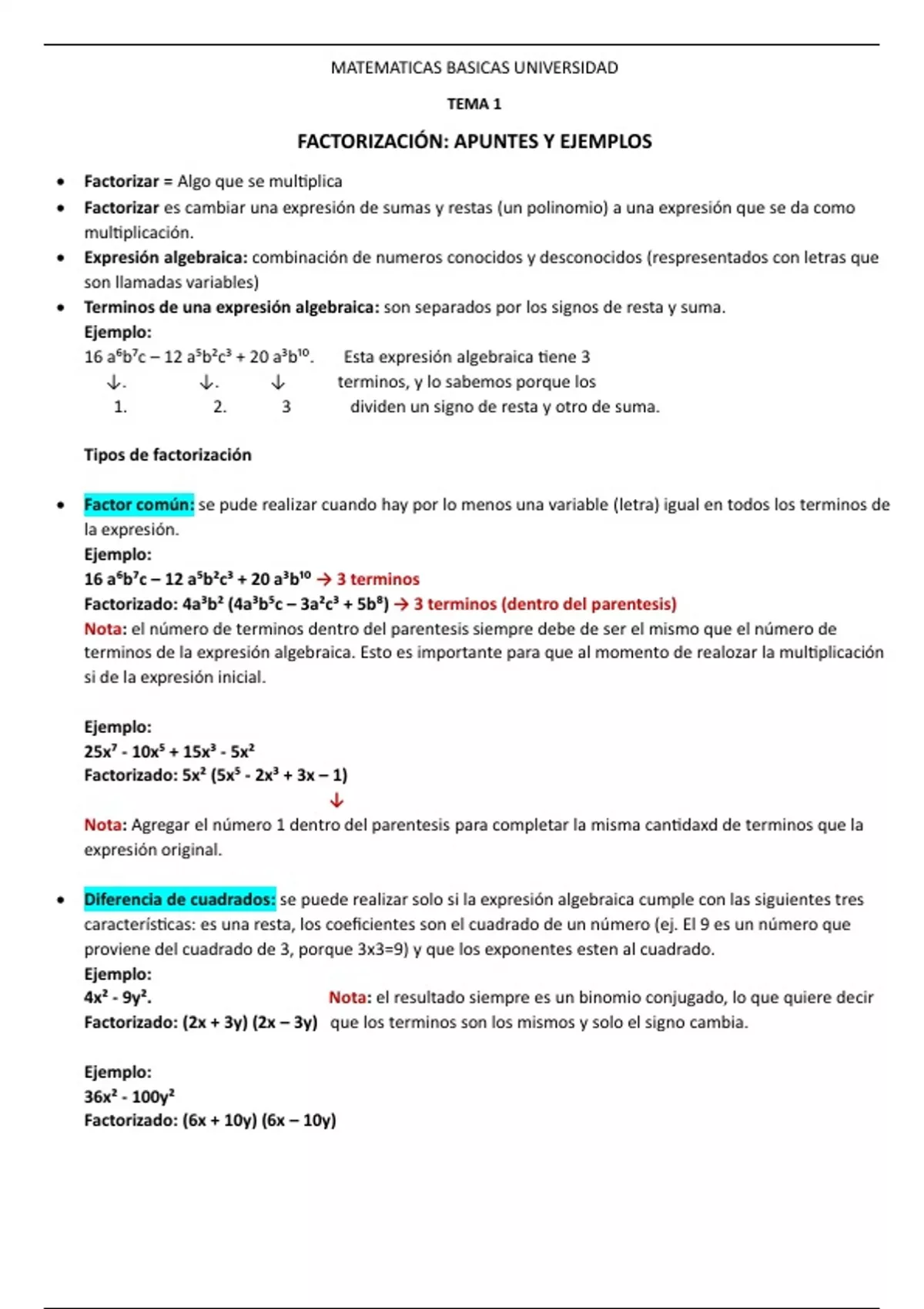 FACTORIZACIÓN: APUNTES Y EJEMPLOS