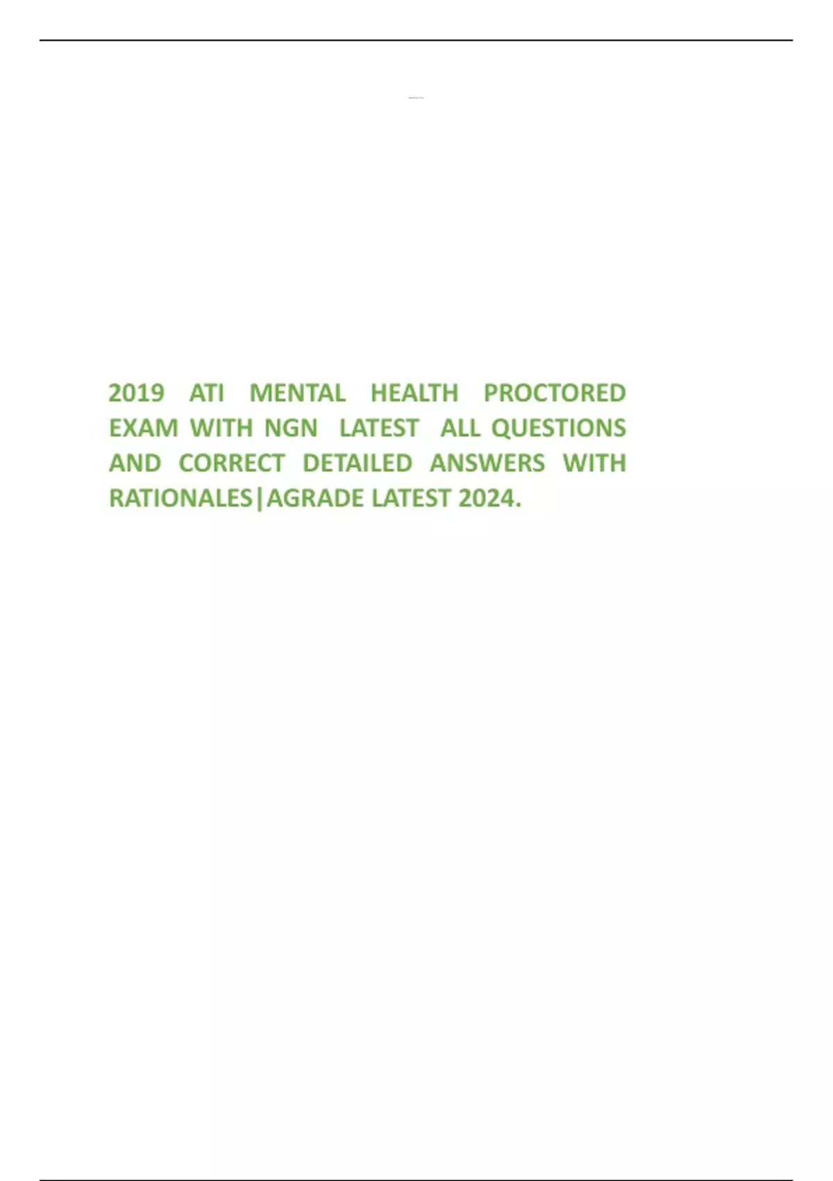2024 ATI MENTAL HEALTH PROCTORED NGN FINAL EXAM 50 QUESTIONS AND CORRECT DETAILED ANSWERS(VERIFIED ANSWERS) LATEST UPDATES 2024 GUARANTEED PASS A+