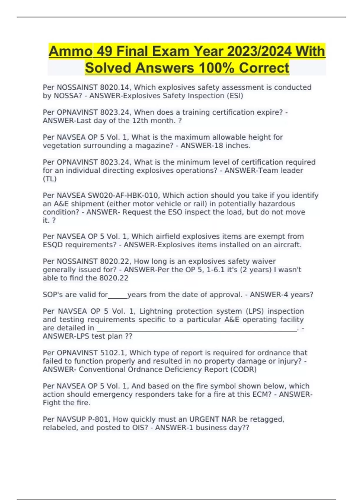 Ammo 49 Final Exam Year 2023/2024 With Solved Answers 100% Correct