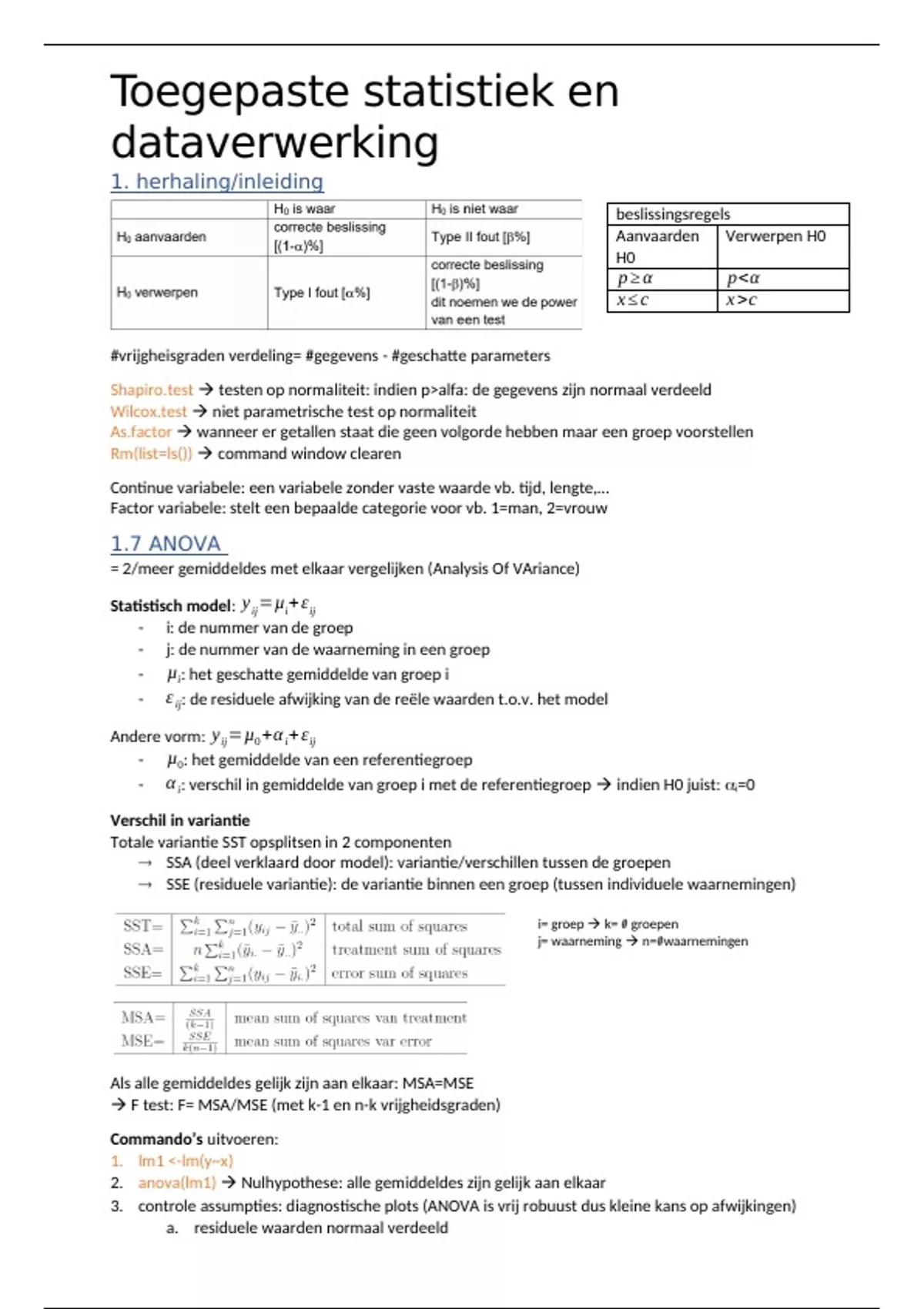 SSE (residuele variantie): de variantie binnen een groep (tussen individuele waarnemingen)