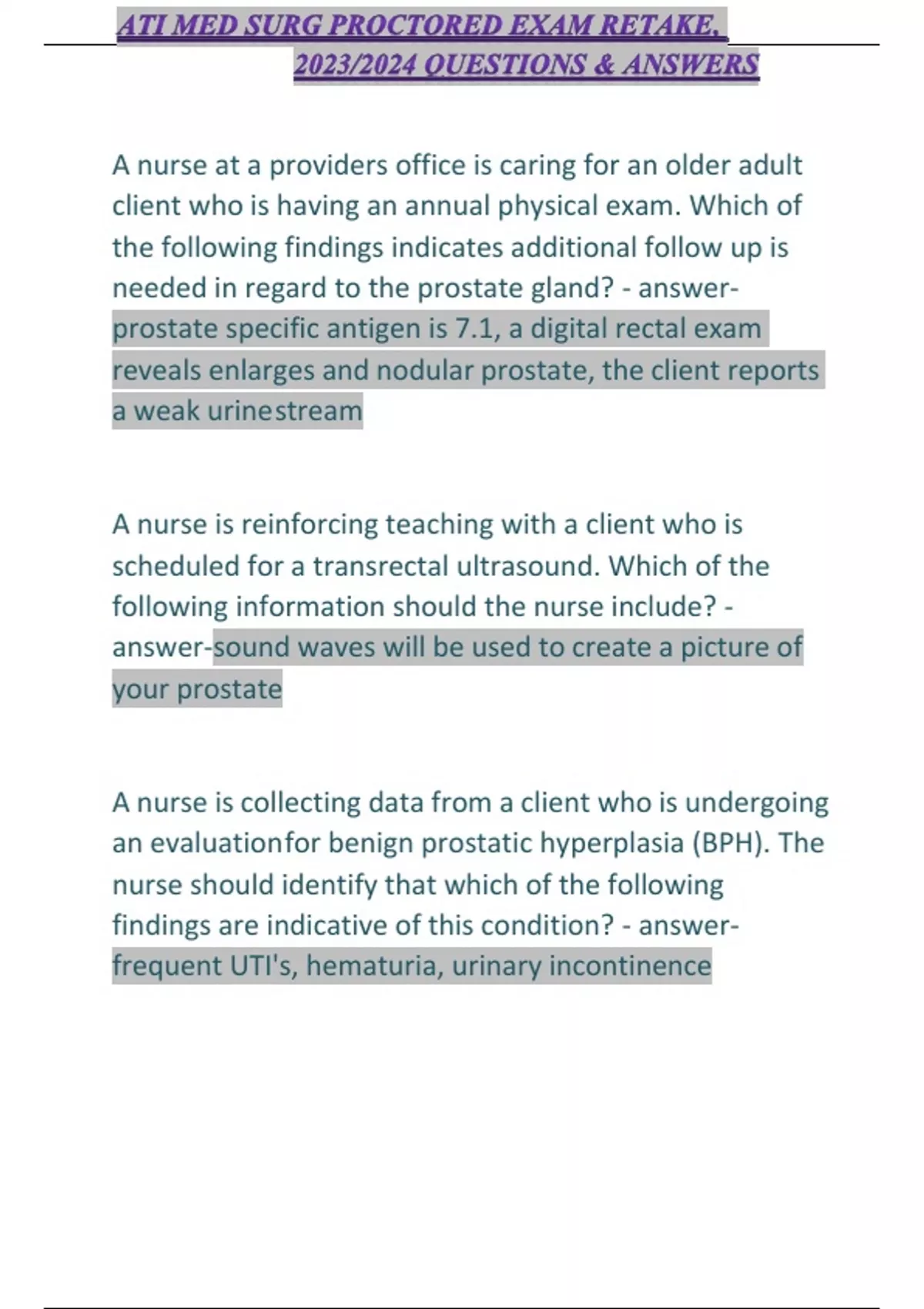 ATI MED SURG PROCTORED EXAM RETAKE, 2023/2024 QUESTIONS & ANSWERS
