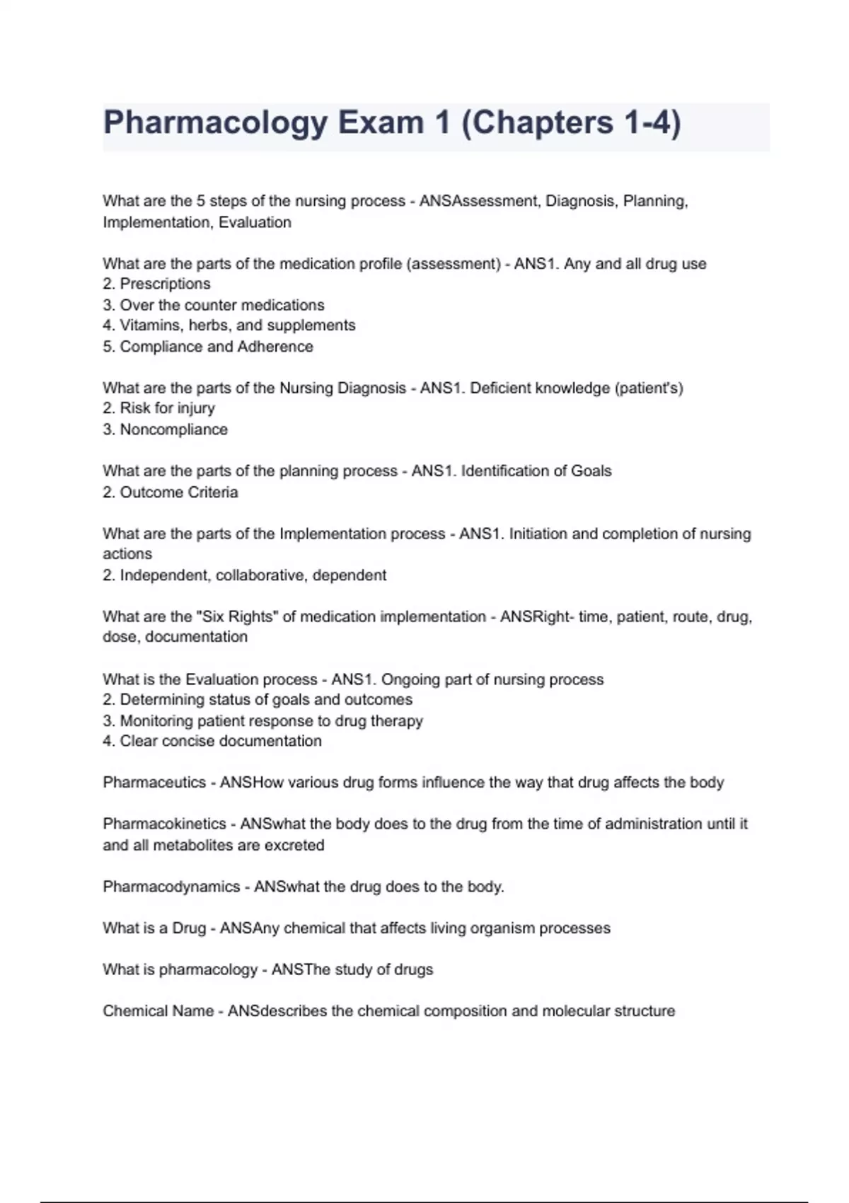 Pharmacology Exam 1 (Chapters 1-4) already graded A+ 2024/2025