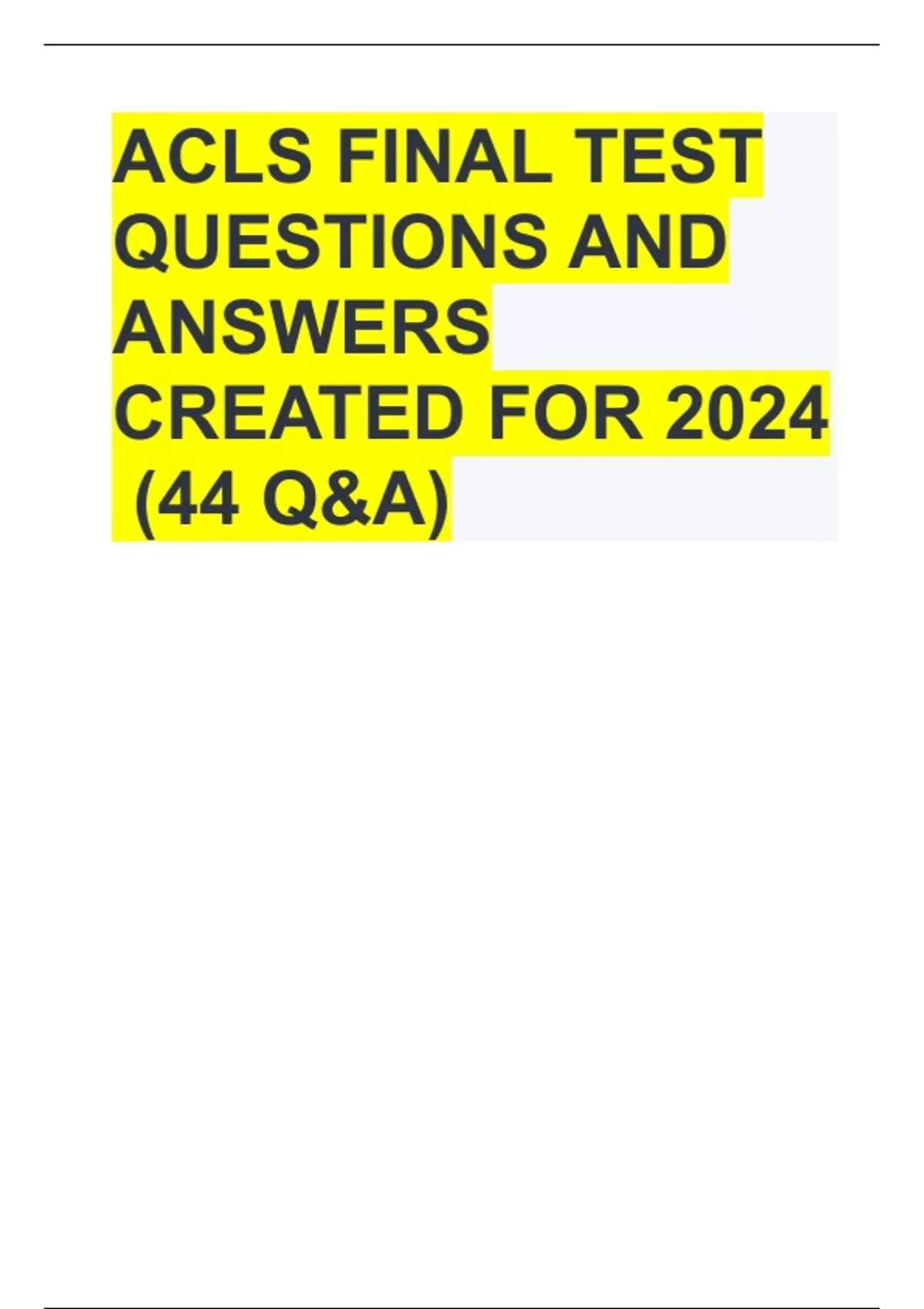 ACLS FINAL TEST QUESTIONS AND ANSWERS CREATED FOR 2024 (44 Q&A)