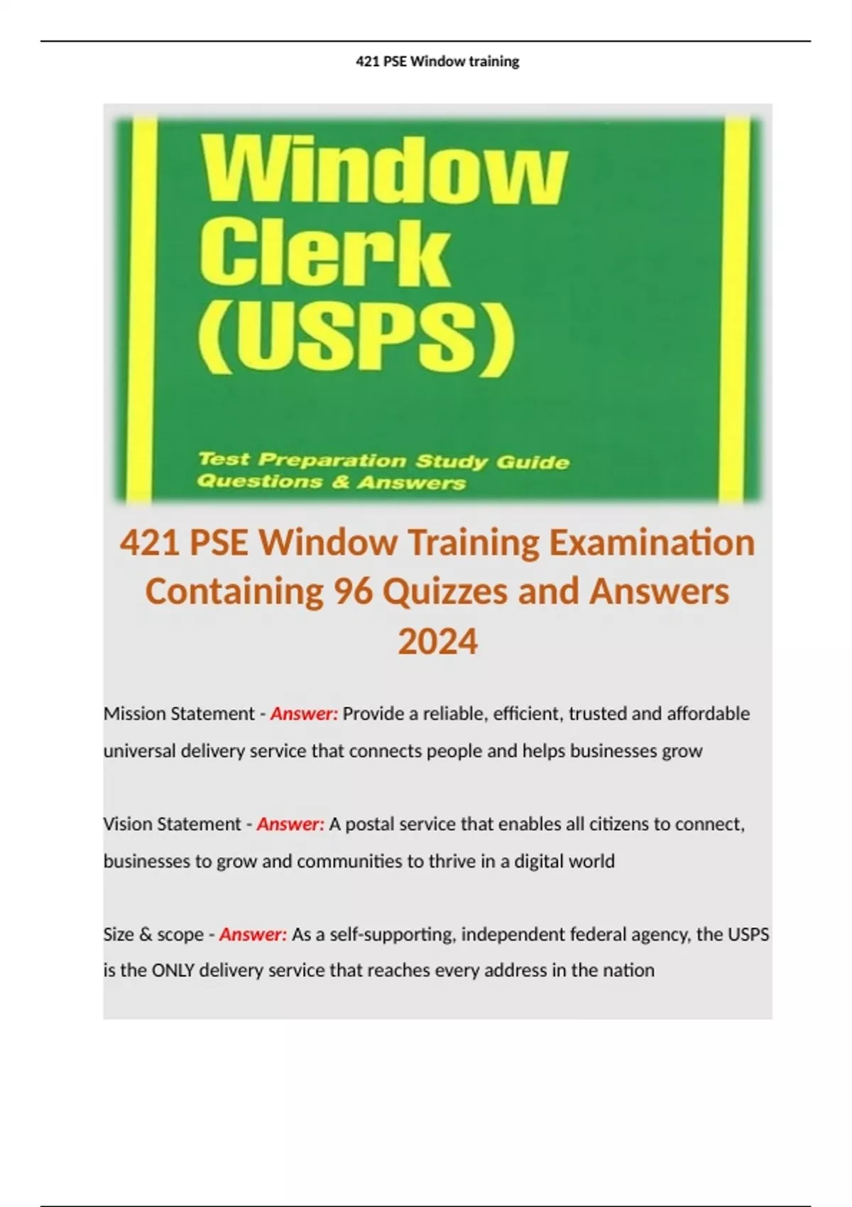 421 PSE Window Training Examination