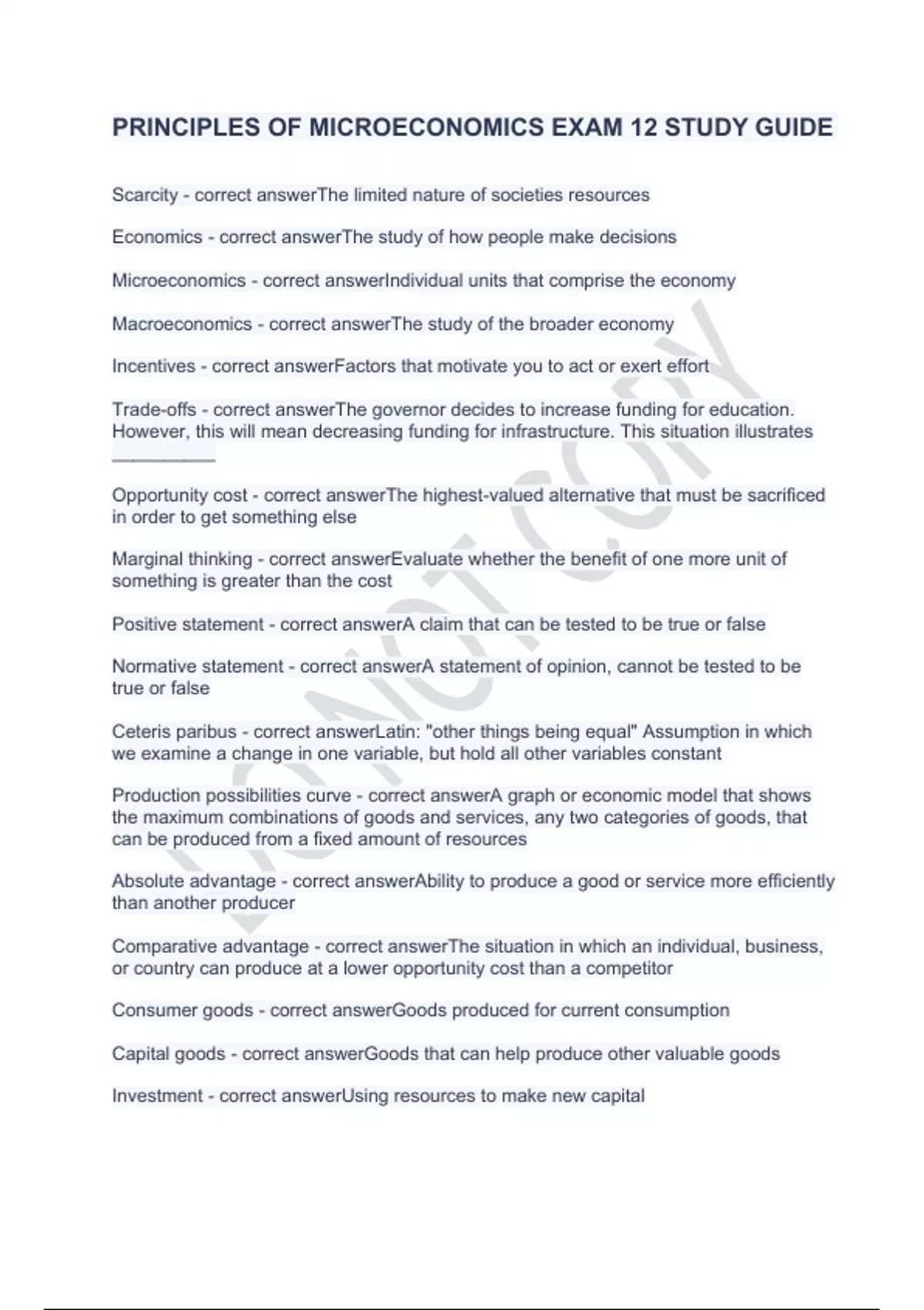PRINCIPLES OF MICROECONOMICS EXAM 12 STUDY GUIDE