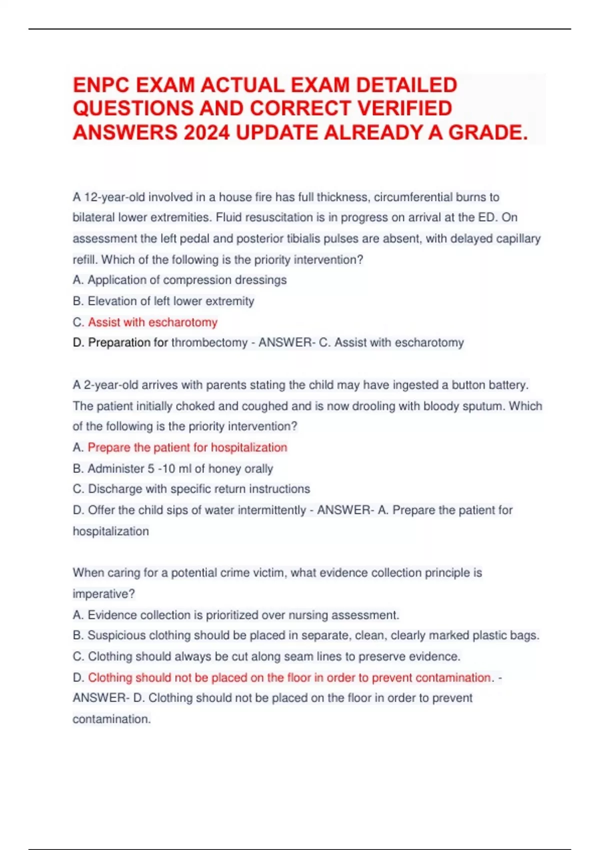 ANSWERS 2024 UPDATE ALREADY A GRADE.