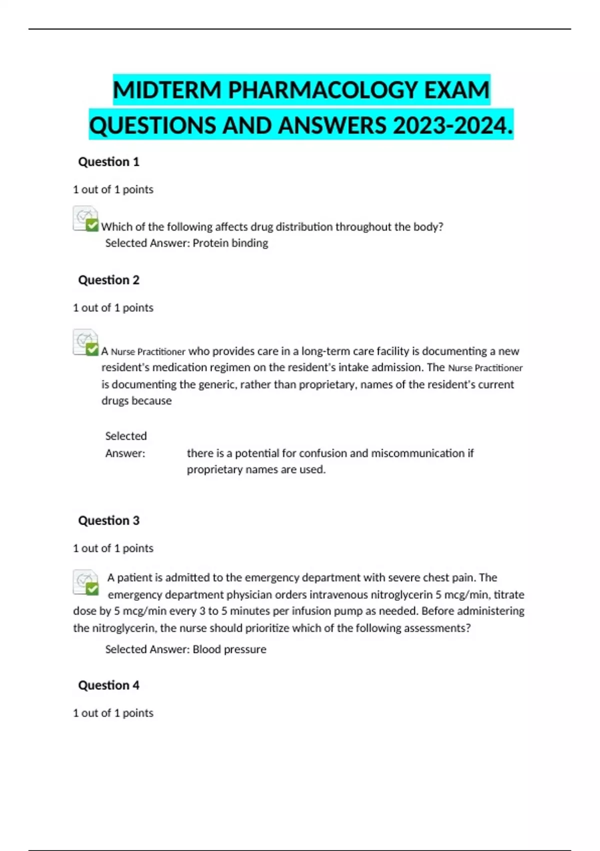 MIDTERM PHARMACOLOGY EXAM QUESTIONS AND ANSWERS