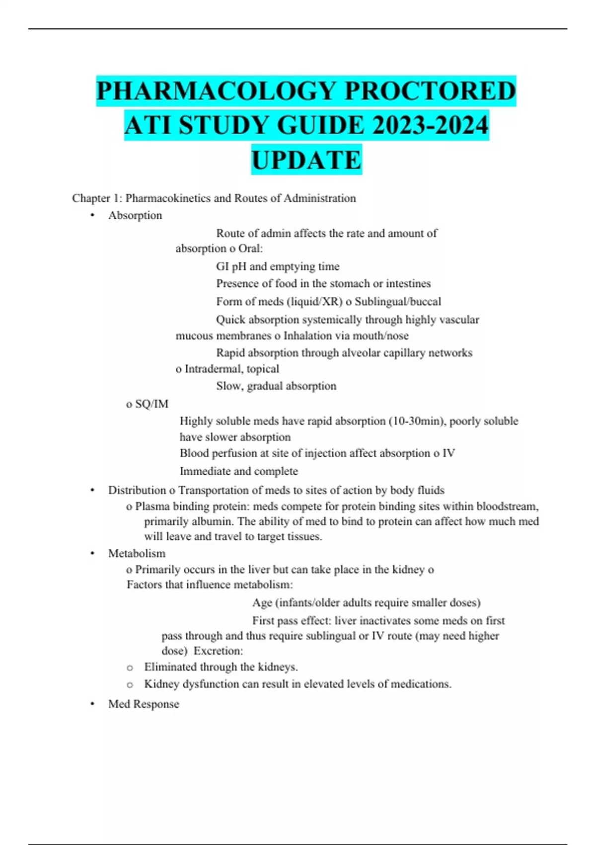 HARMACOLOGY PROCTORED ATI STUDY GUIDE UPDATE
