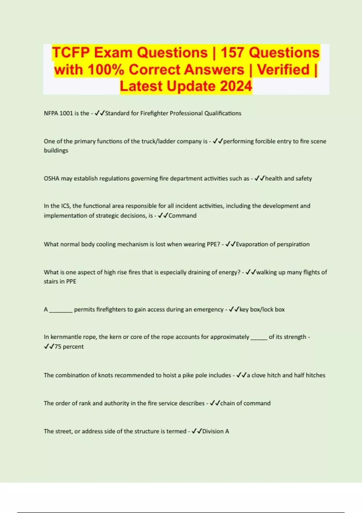 TCFP Exam Questions | 157 Questions with 100% Correct Answers | Verified | Latest Update 2024