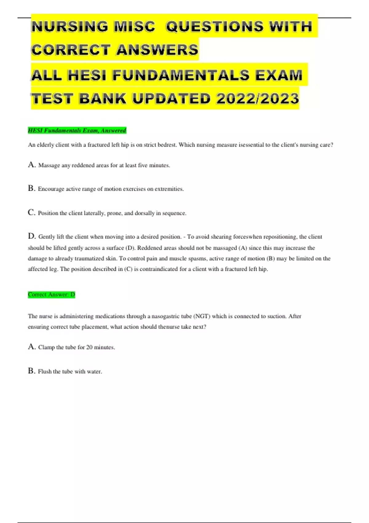 All Nursing MISC of hesi fundamentals exam test bank updated 2023