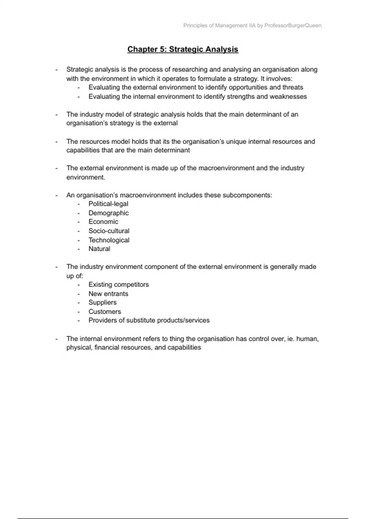 Summary Principles of Management IIA Chpt.5 - Strategic Analysis