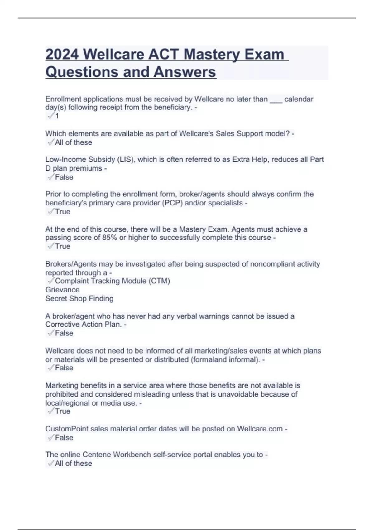 2024 Wellcare ACT Mastery Exam Questions and Answers.