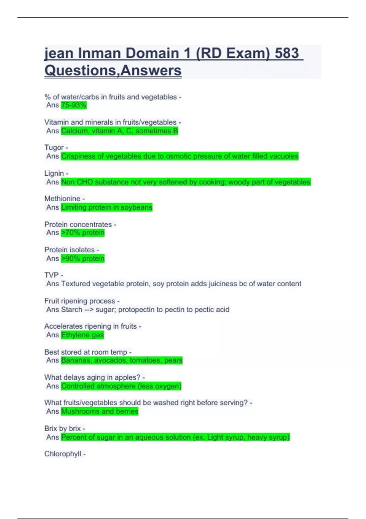 jean Inman Domain 1 (RD Exam) 583 Questions,Answers.