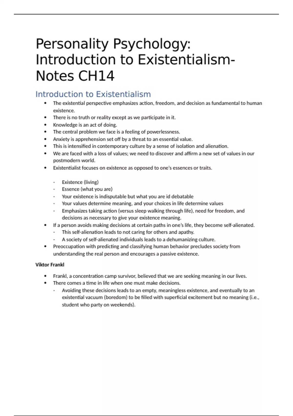 Explains the history of existentialism and what it consists of and means in general and related to personality and psychology.