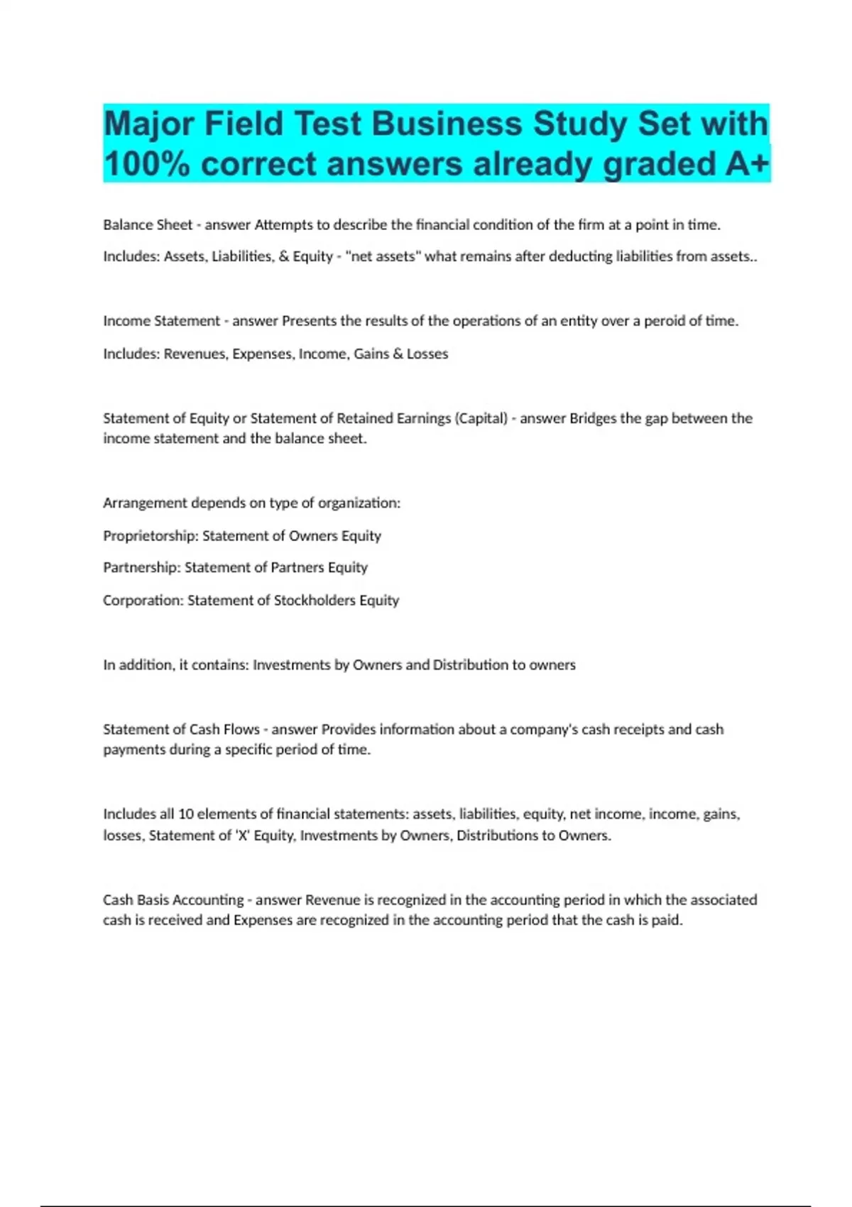 Major Field Test Business Study Set with 100% correct answers already graded A+