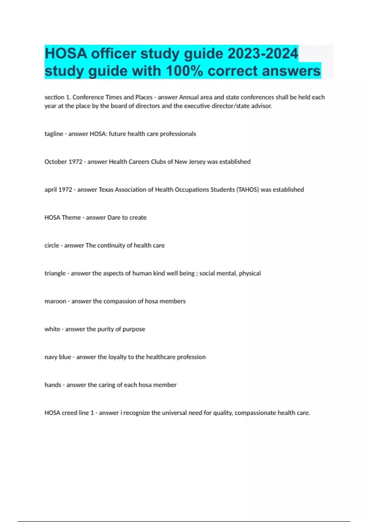 HOSA officer study guide study guide with 100% correct answers.