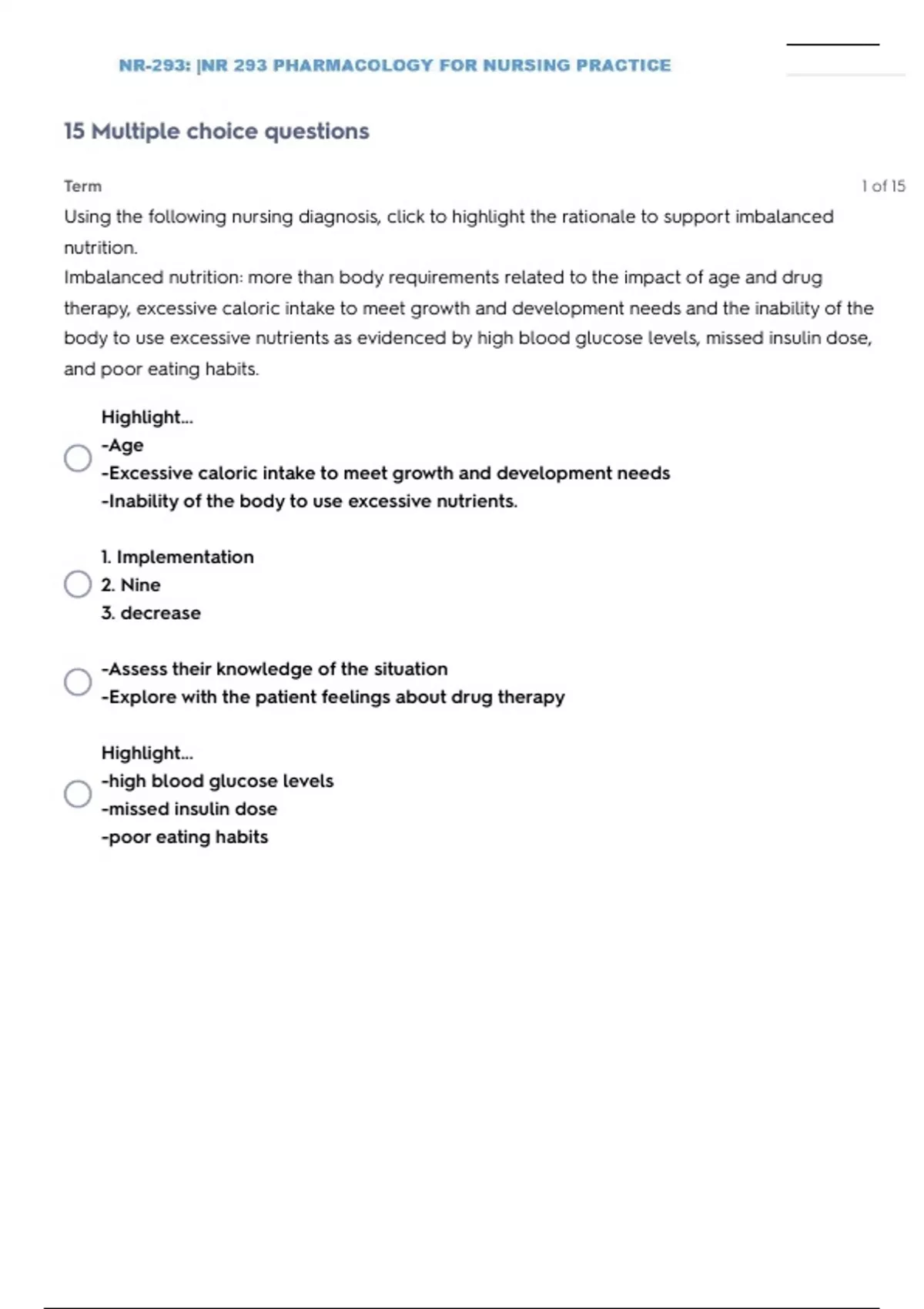 NR-293: |NR 293 PHARMACOLOGY FOR NURSING PRACTICE