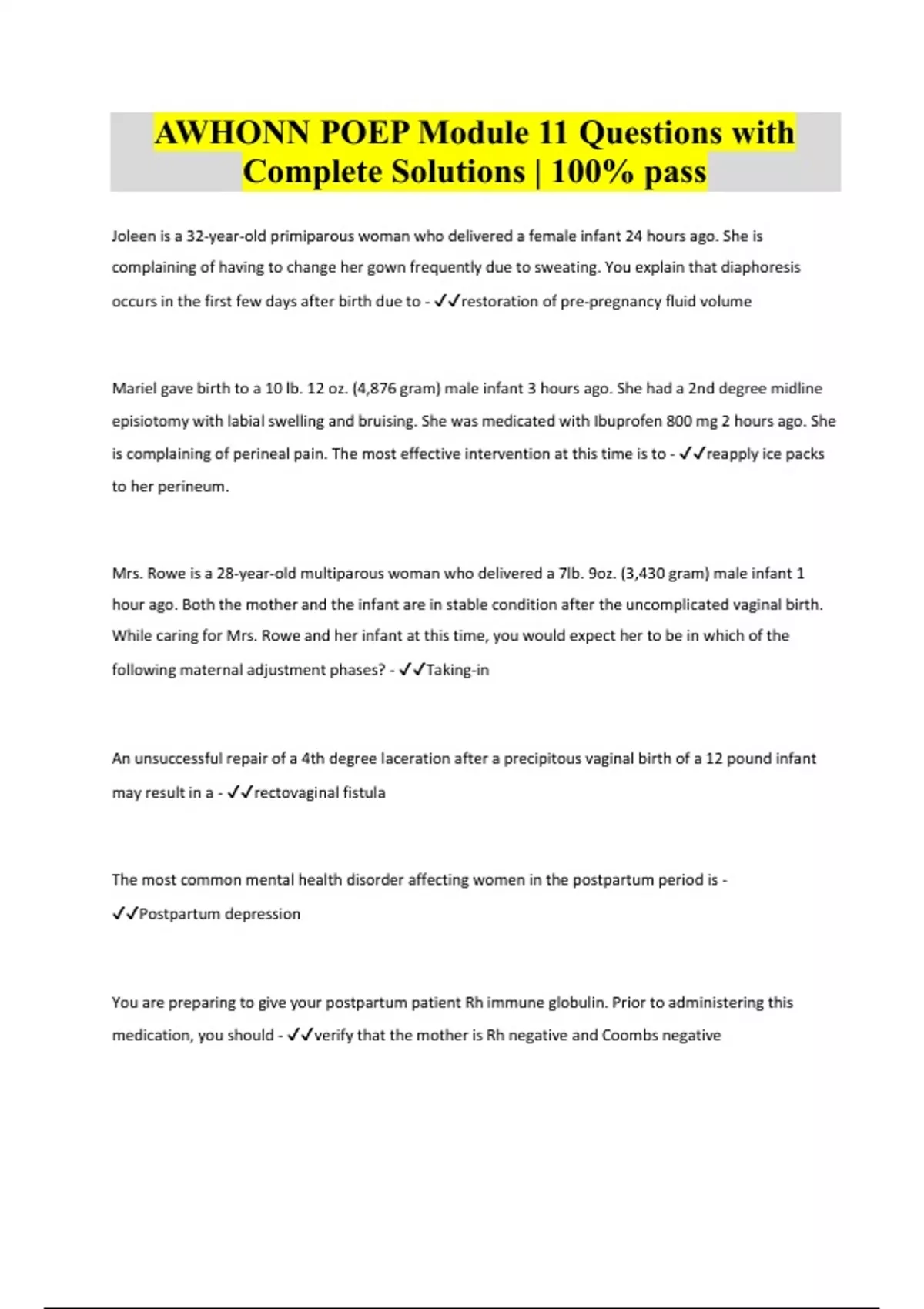 AWHONN POEP Module 11 Questions with Complete Solutions | 100% pass