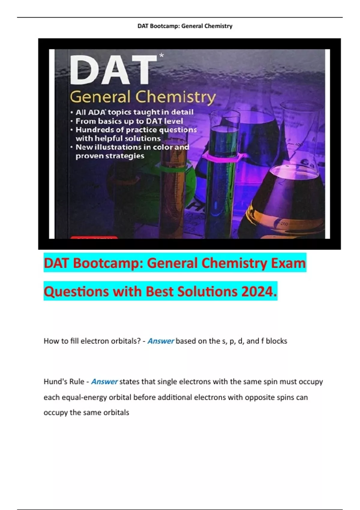DAT Bootcamp: General Chemistry Exam Questions with Best Solutions 2024.