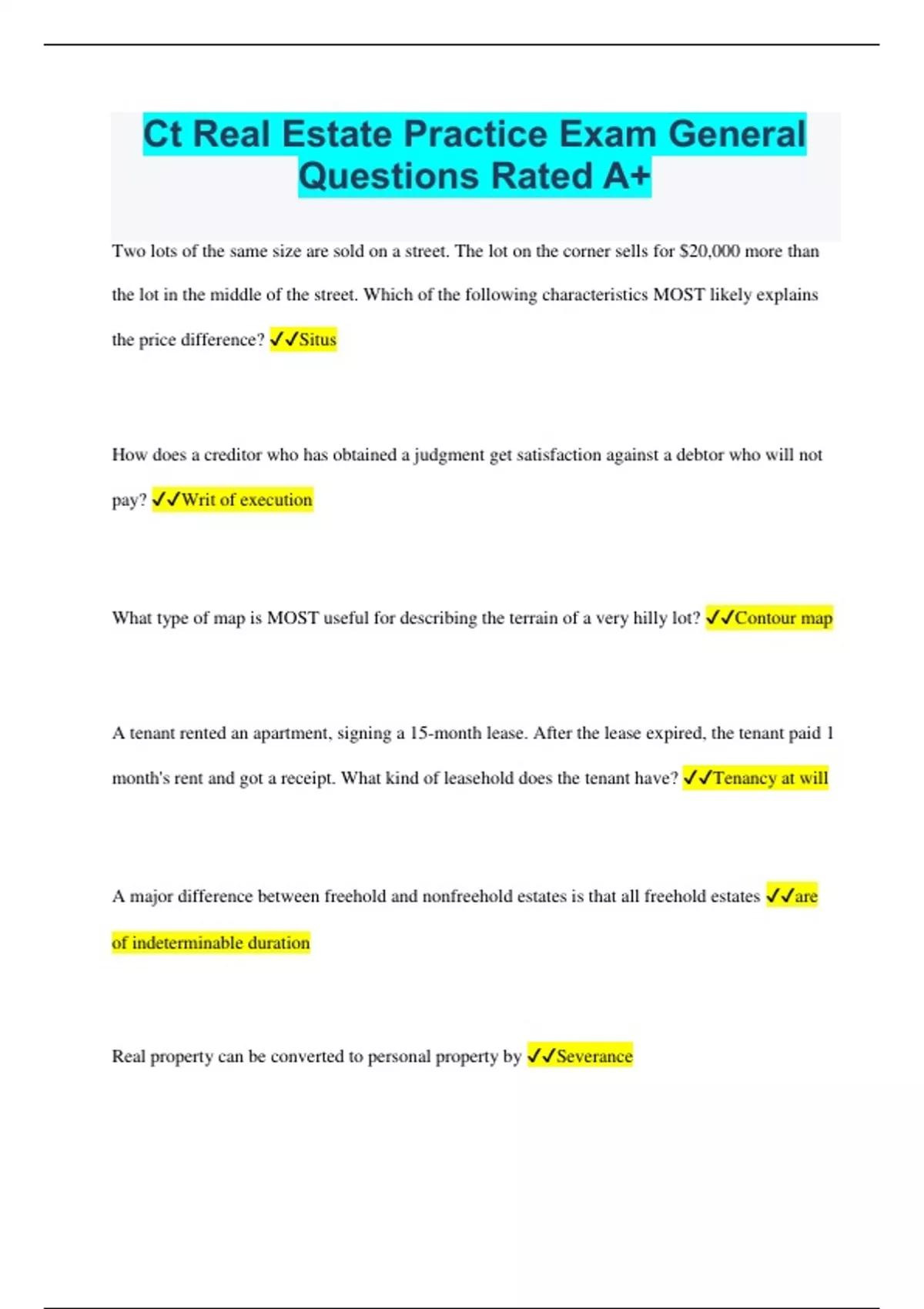 Ct Real Estate Practice Exam General Questions Rated A+