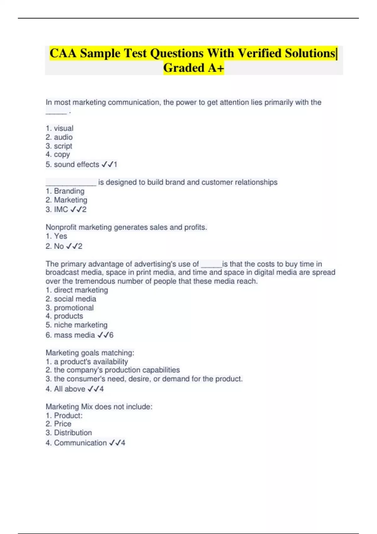 CAA Sample Test Questions With Verified Solutions| Graded A+