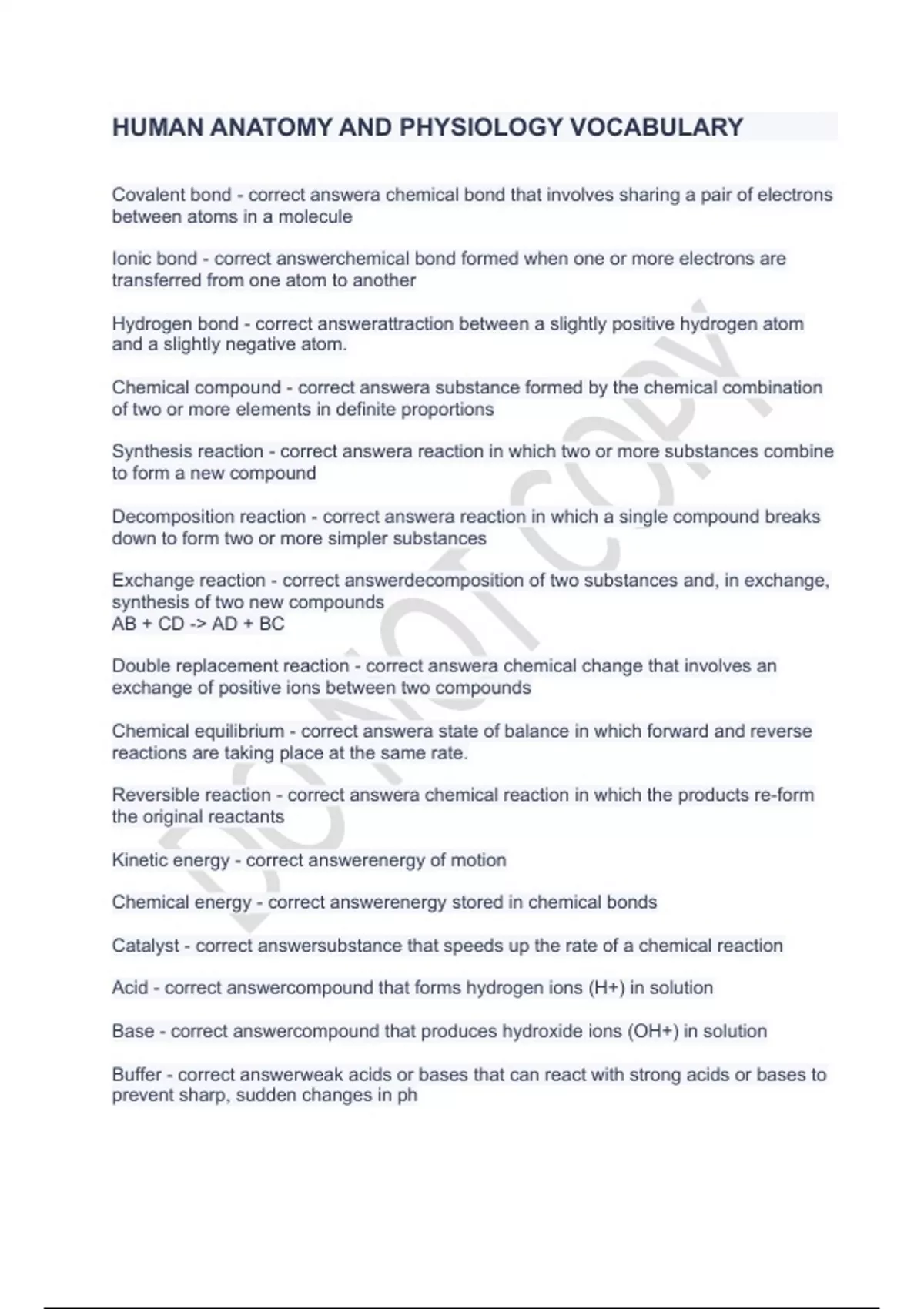 HUMAN ANATOMY AND PHYSIOLOGY VOCABULARY