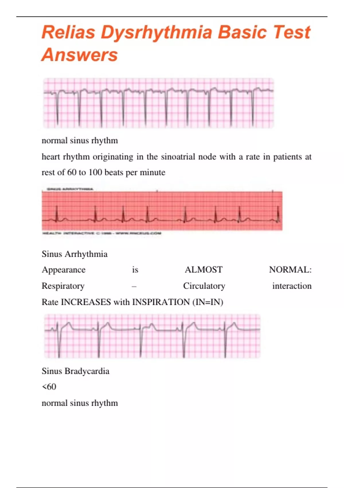 Relias Dysrhythmia Basic Test Answers |Dysrhythmia ( A+ GRADED 100% VERIFIED)