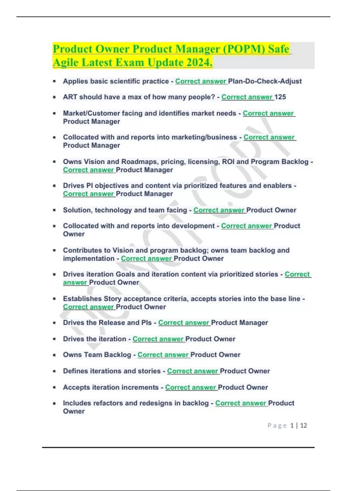 Product Owner Product Manager (POPM) Safe Agile Latest Exam Update 2024..Product Owner Product Manager (POPM) Safe Agile Latest Exam Update 2024..