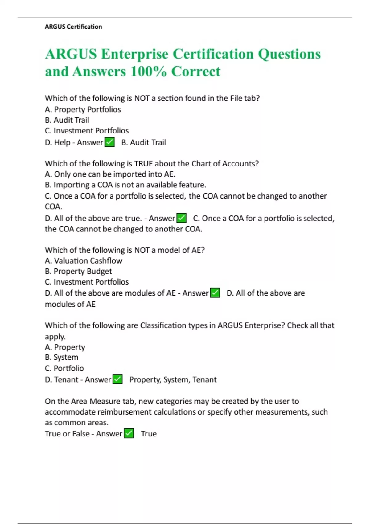 ARGUS Enterprise Certification Questions and Answers 100% Correct