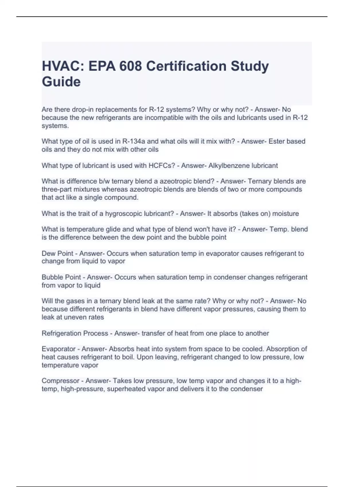 HVAC EPA 608 Certification Study Guide with complete solutions