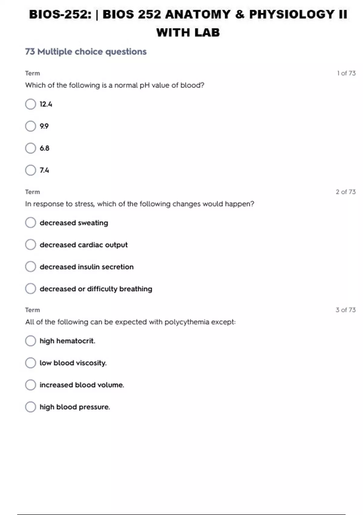 BIOS-252: | BIOS 252 ANATOMY & PHYSIOLOGY II WITH LAB PRACTICE TEST 18 WITH CORRECT MARKING SCHEME