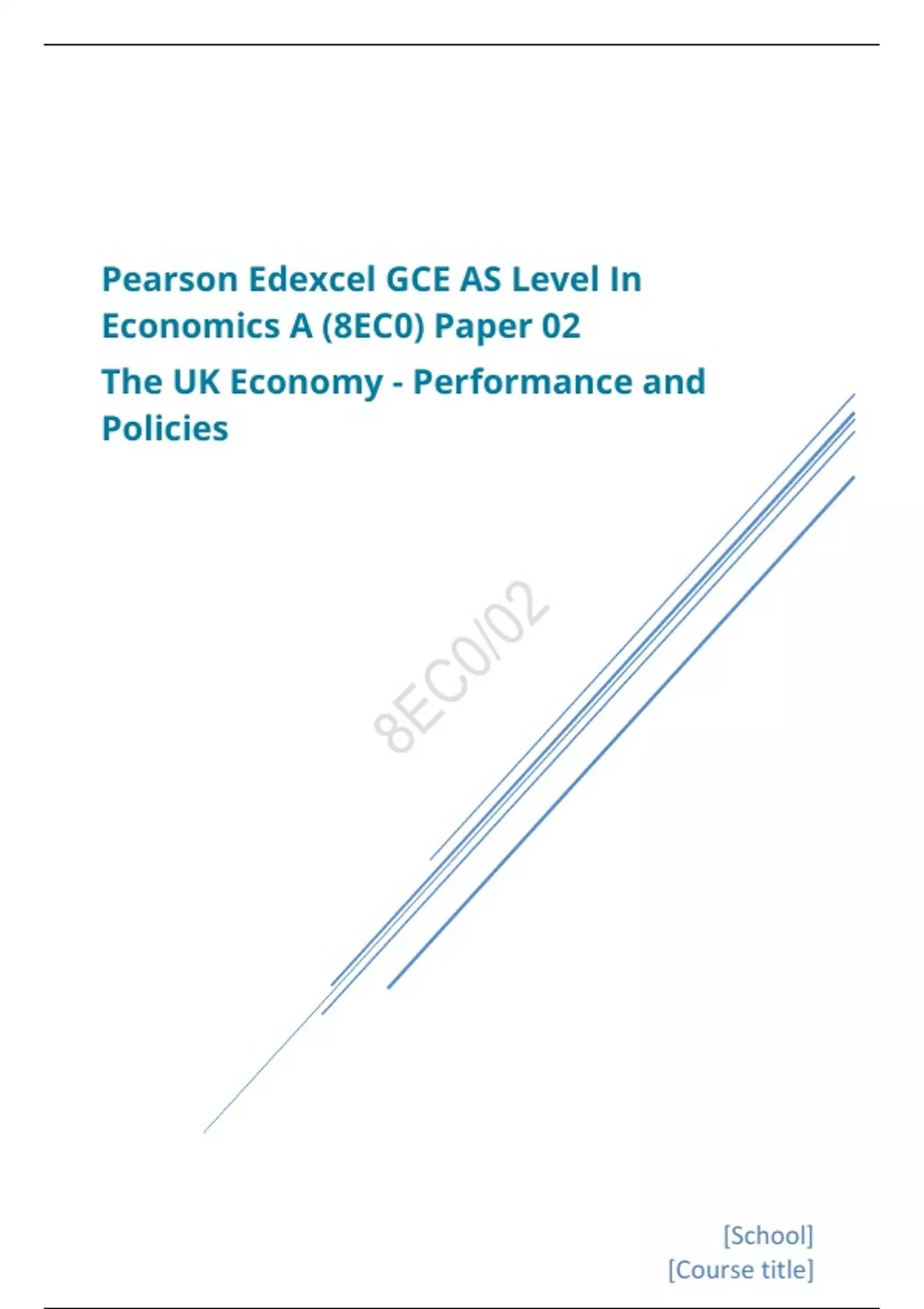 Pearson Edexcel GCE AS Level In Economics A (8EC0) Paper 02 The UK Economy - Performance and Policies