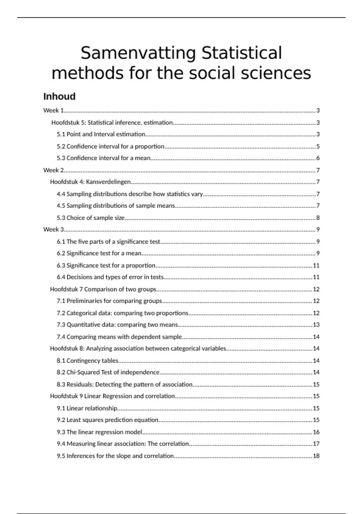 Week 1 t/m 3 uitgebreide samenvatting statistische modellen