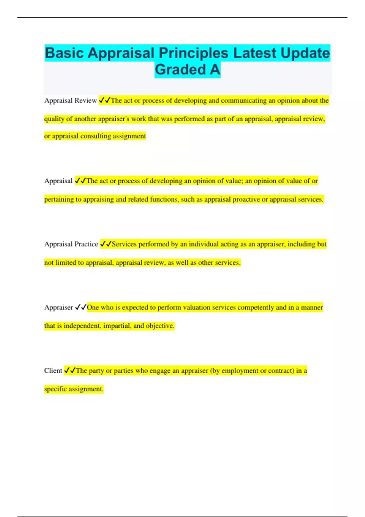 Basic Appraisal Principles Latest Update Graded A