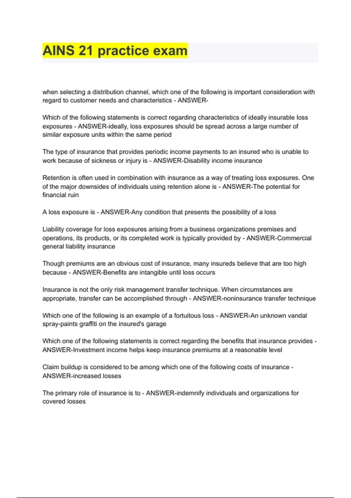 AINS 21 practice exam ANSWERED 2024