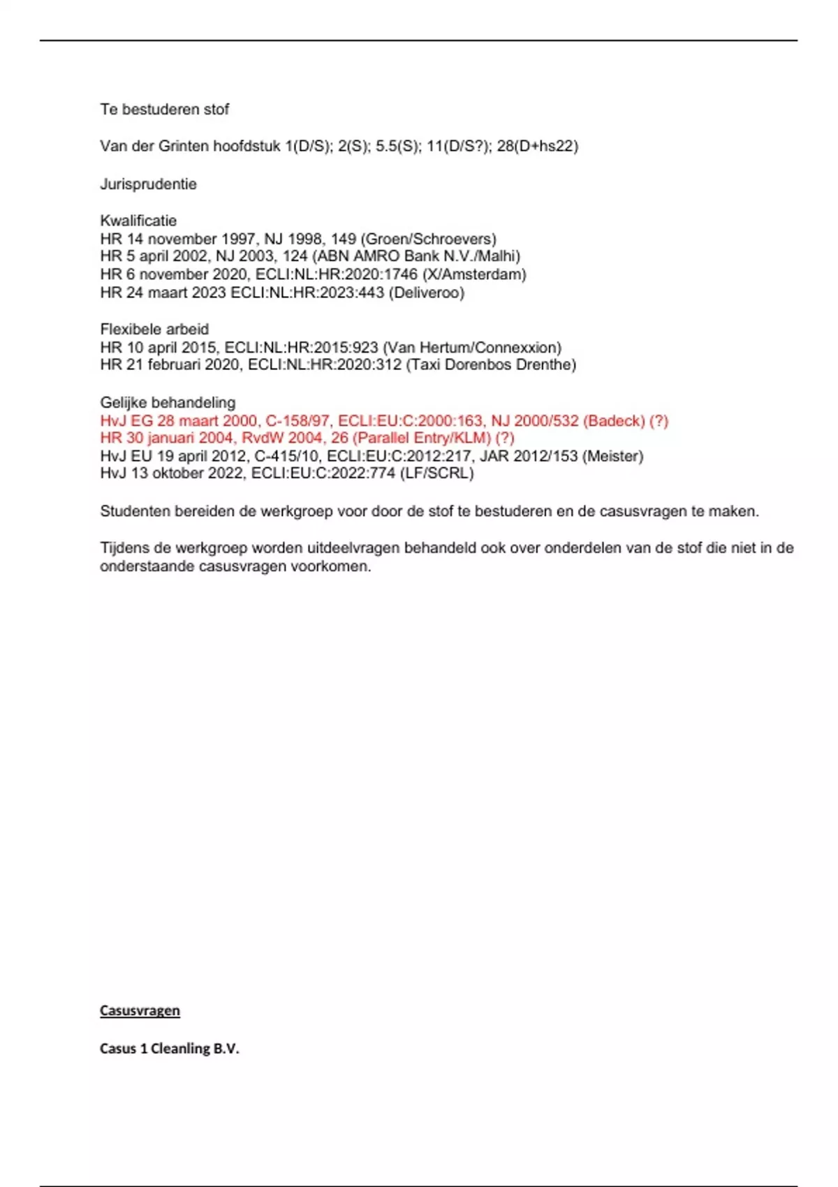 Aantekeningen en uitwerkingen werkgroep 1 verdieping arbeidsrecht