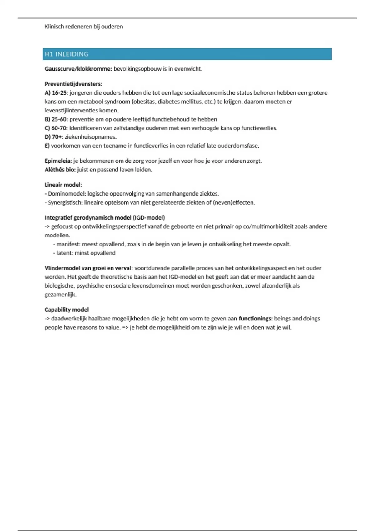 H2 VERPLEEGKUNDIGE THEORIEËN BIJ KWETSBARE OUDEREN