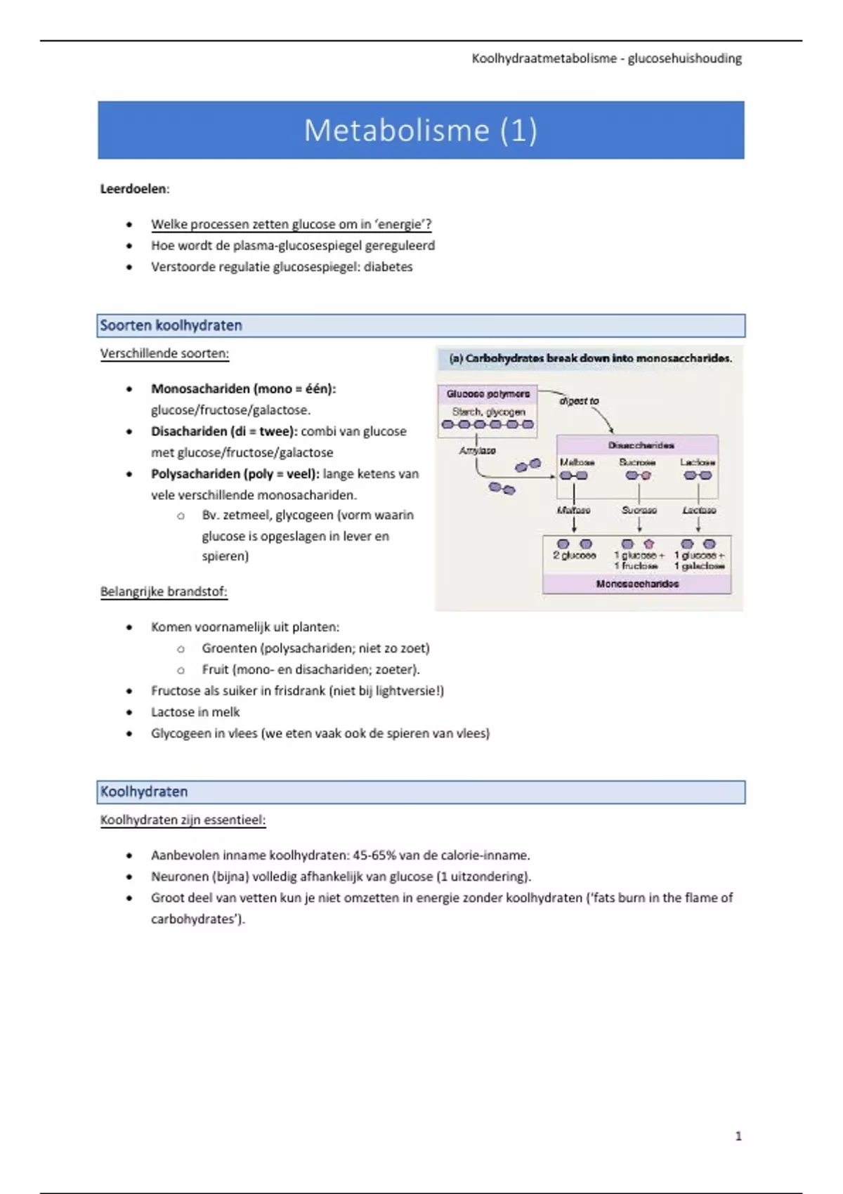 , Koolhydraatmetabolisme - glucosehuishouding