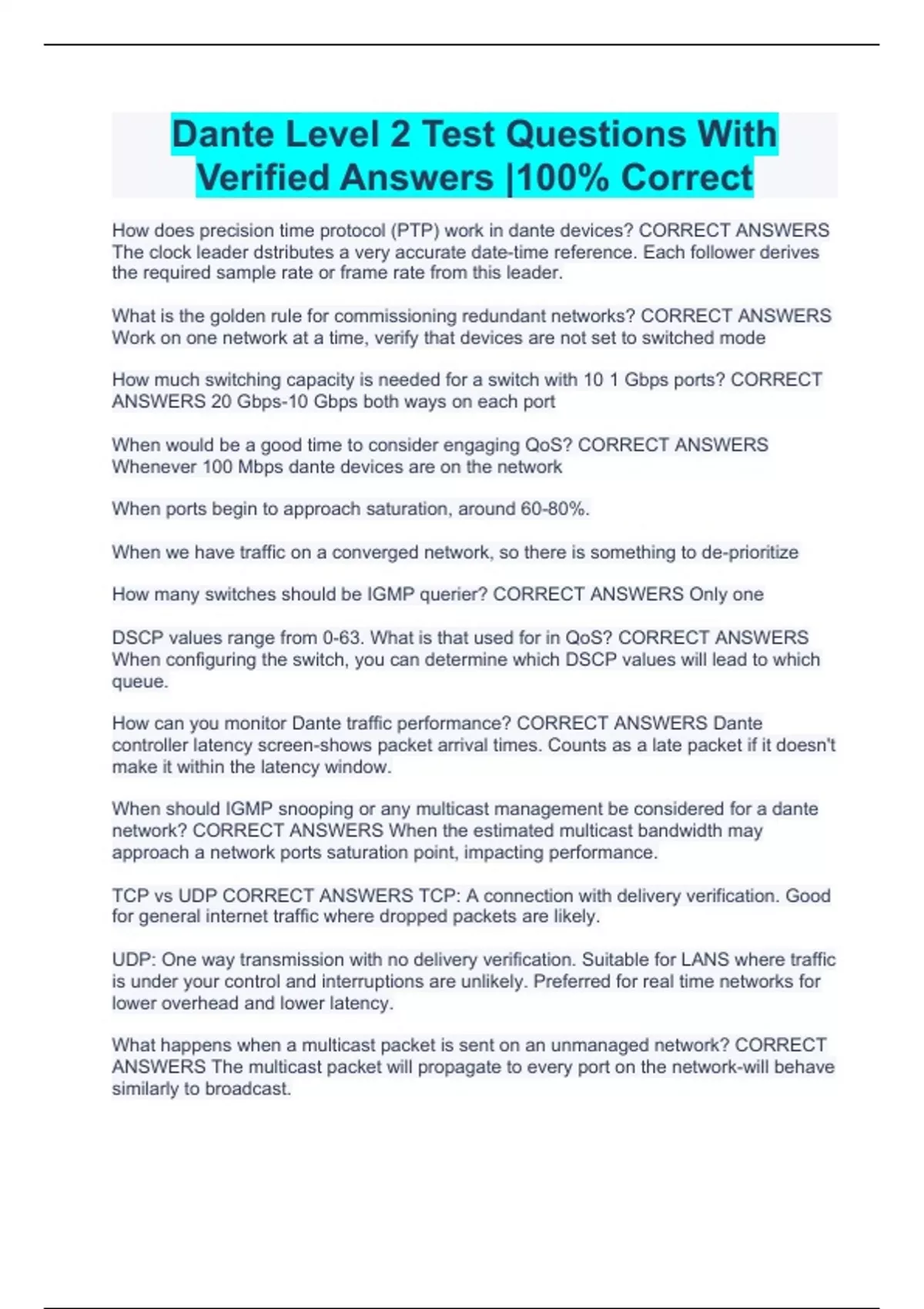 Dante Level 2 Test Questions With Verified Answers |100% Correct