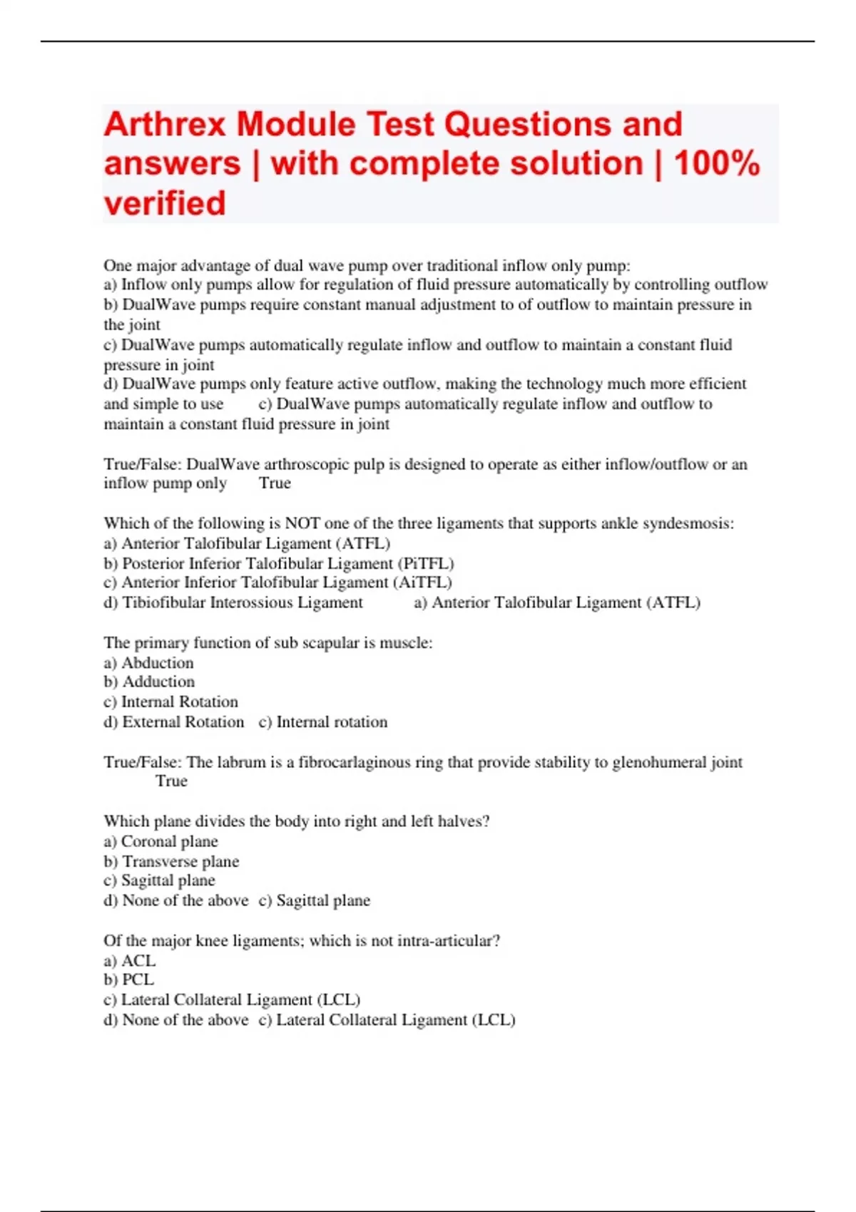 Arthrex Module Test Questions and answers | with complete solution | 100% verified