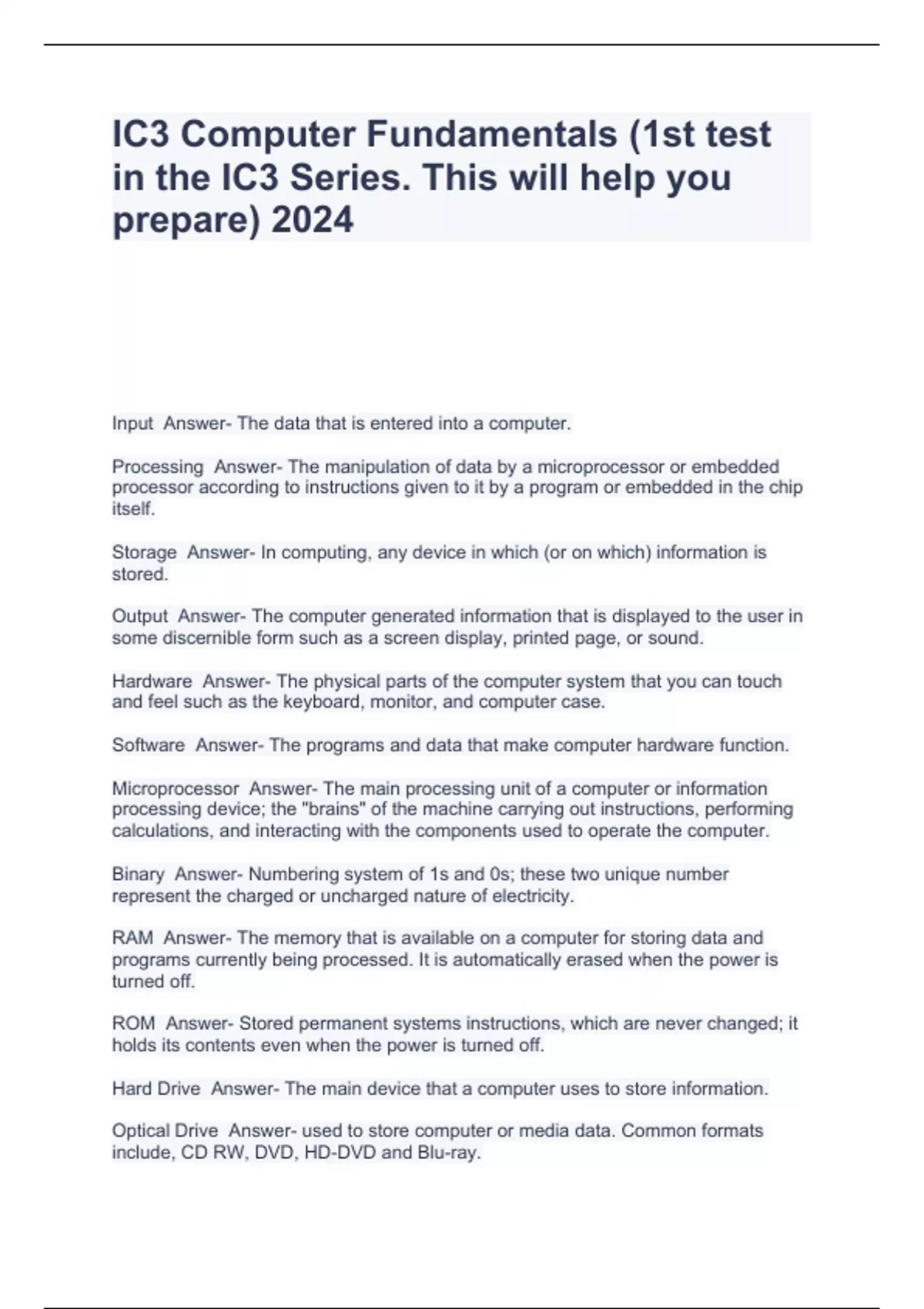 IC3 Computer Fundamentals (1st test in the IC3 Series. This will help you prepare) 2024