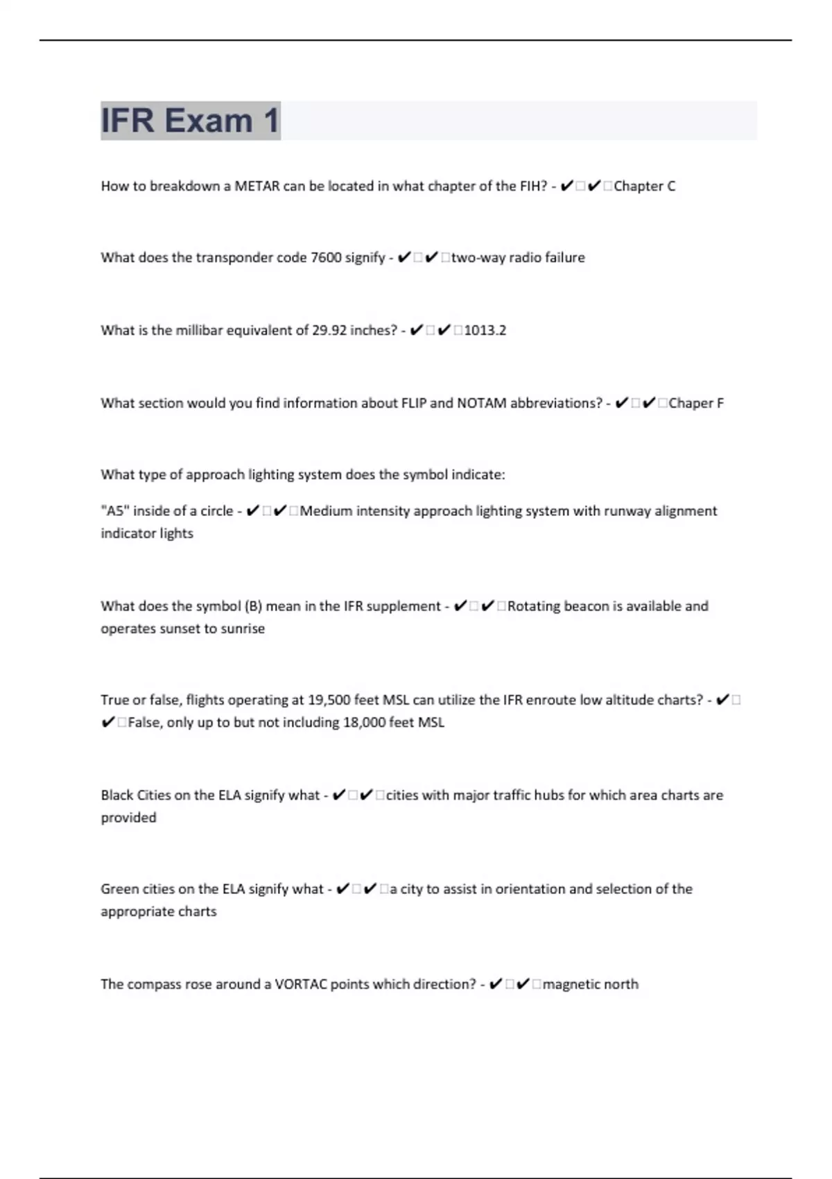 IFR Exam 1 70 Questions with 100% Correct Answers | Updated | Guaranteed A+