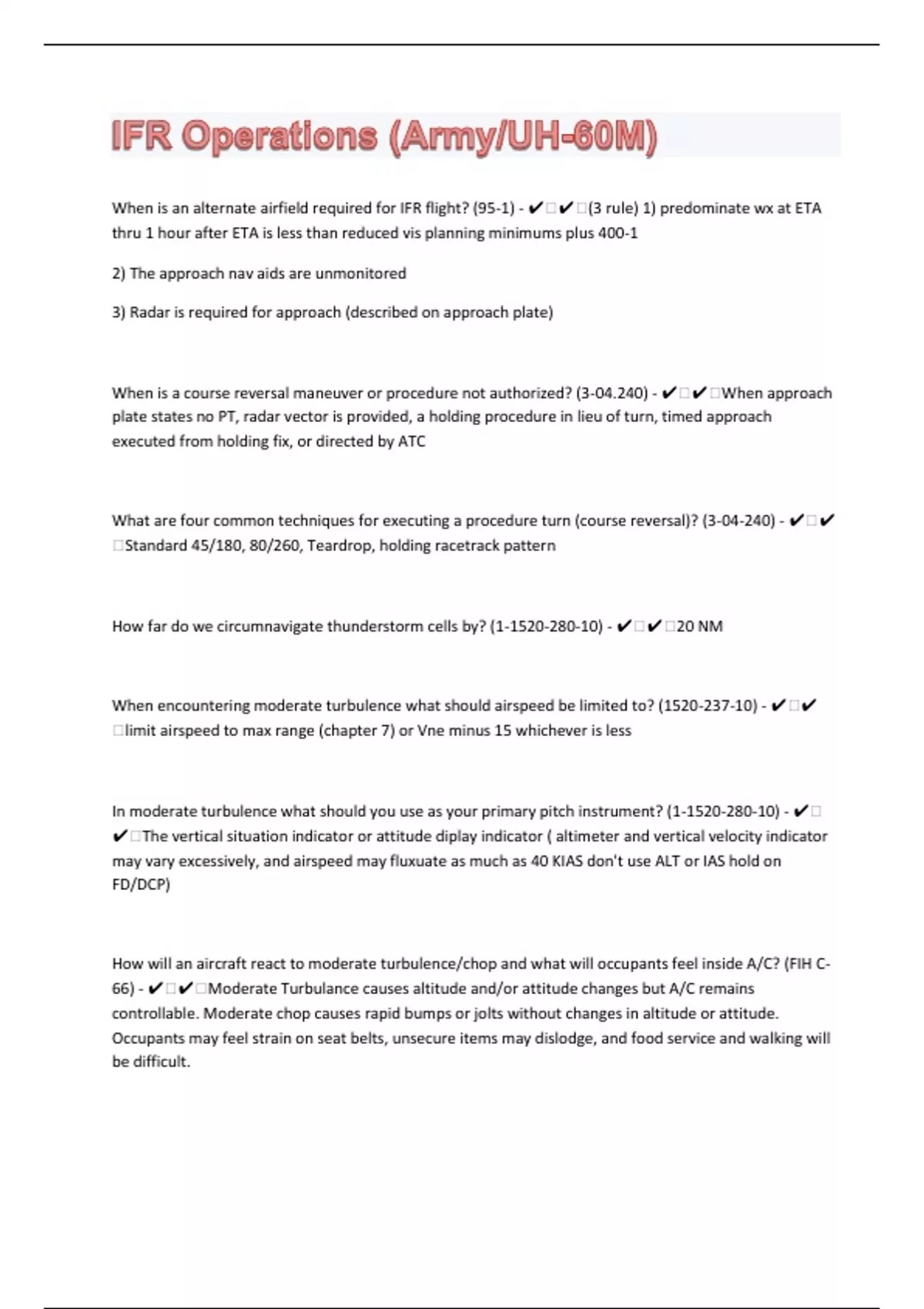 IFR Operations (Army/UH-60M) 117 Exam Study Questions with 100% Correct Answers | Verified