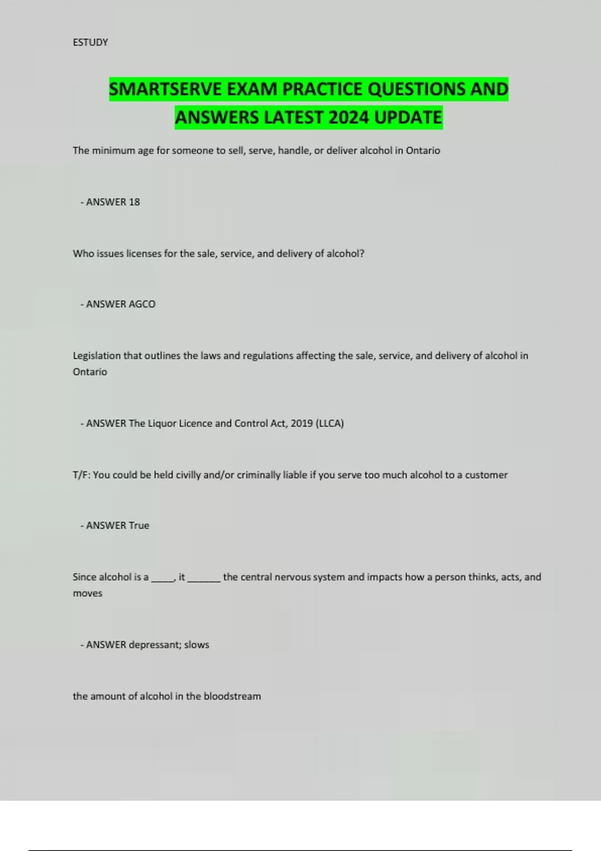 SMARTSERVE EXAM PRACTICE QUESTIONS AND ANSWERS LATEST 2024 UPDATE