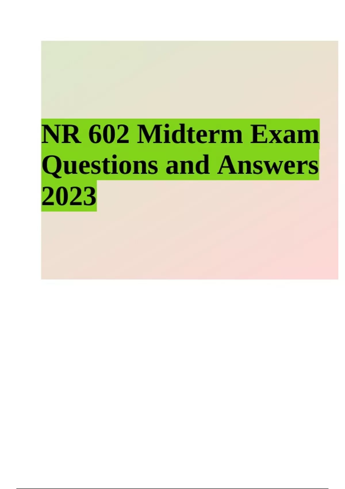 NR 602 Midterm Exam Questions With Answers Latest Updated 2024 (GRADED A+)
